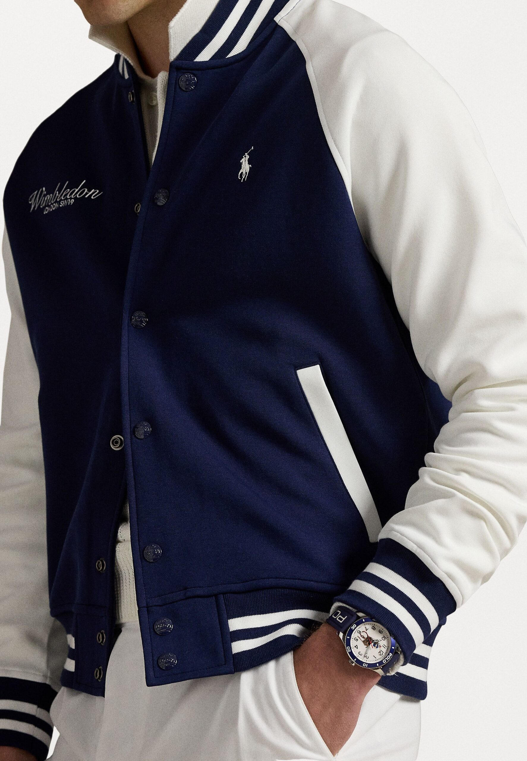 WIMBLEDON DOUBLE KNIT BASEBALL JACKET UNISEX – Bomber Jacket – refined navy/ceramic white
