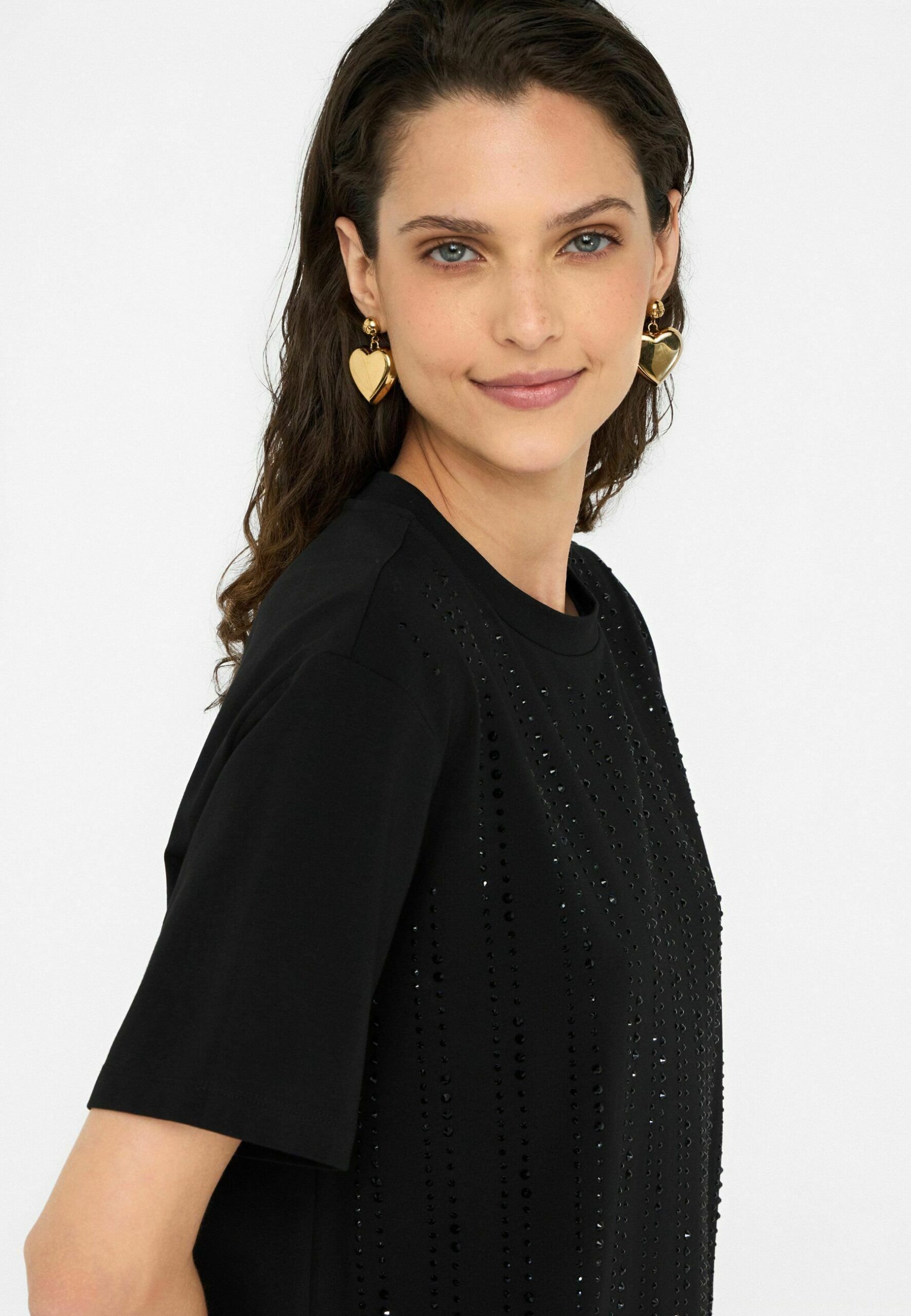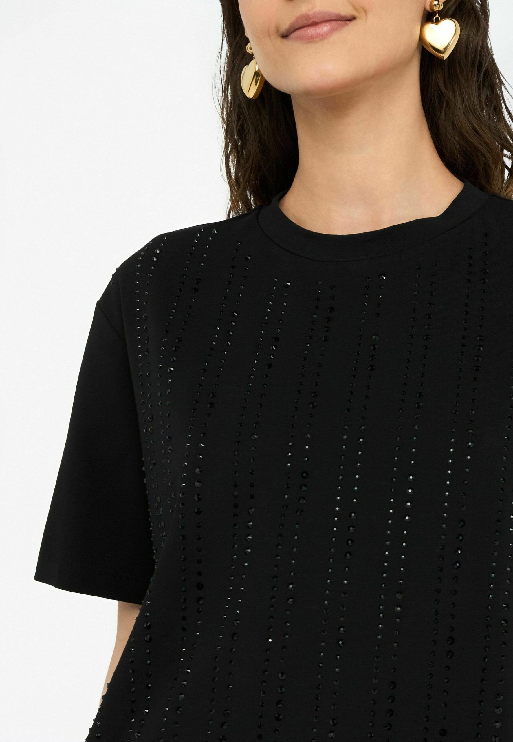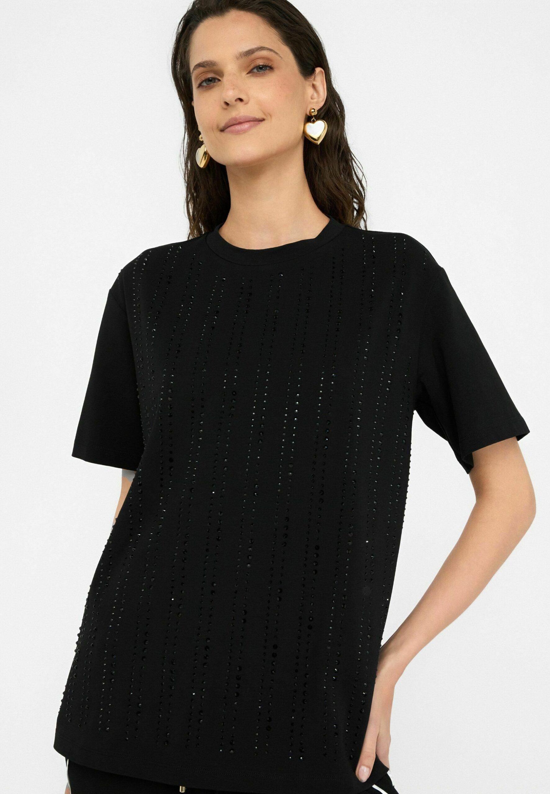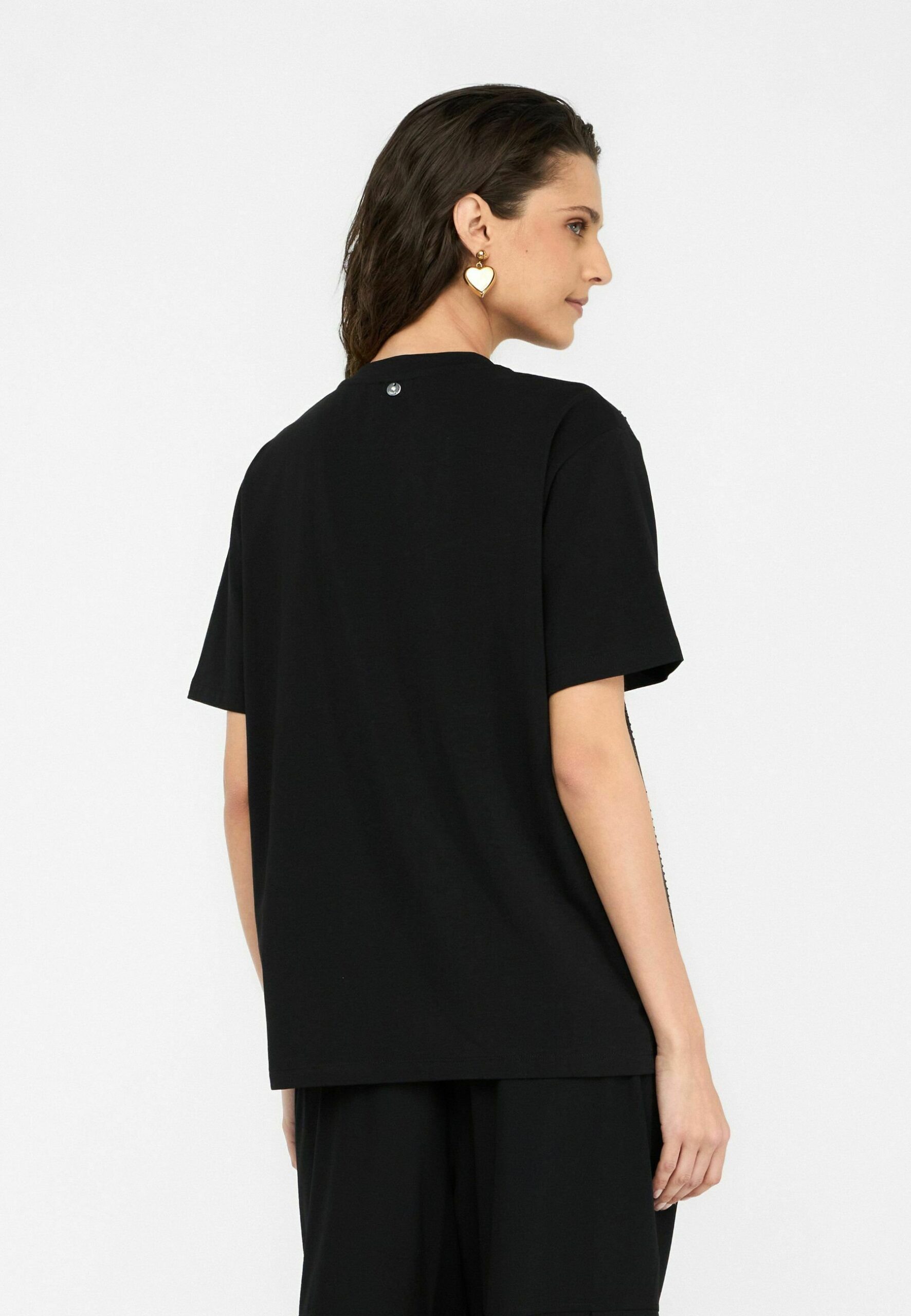 WITH APPLIQUÉS – Print T-shirt – black
