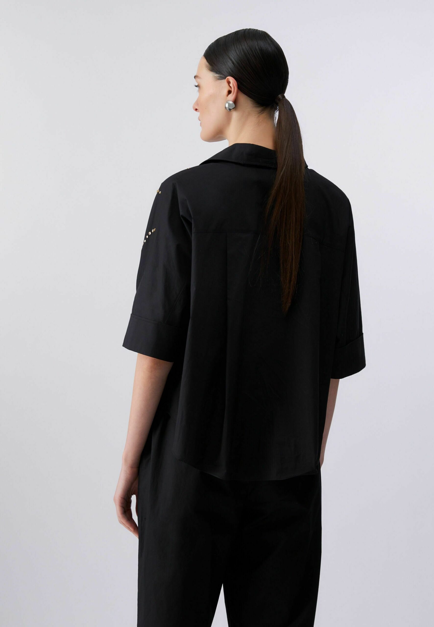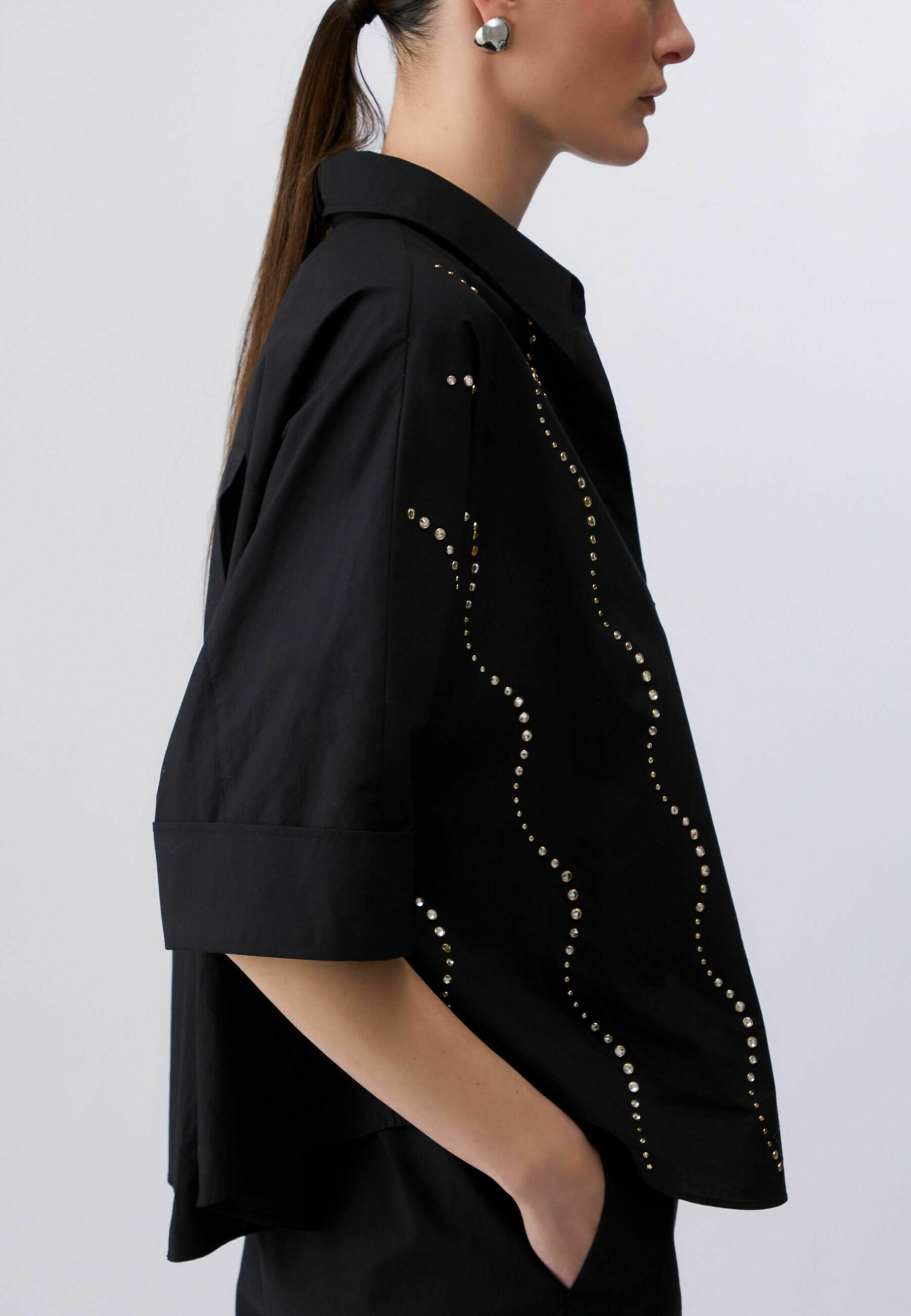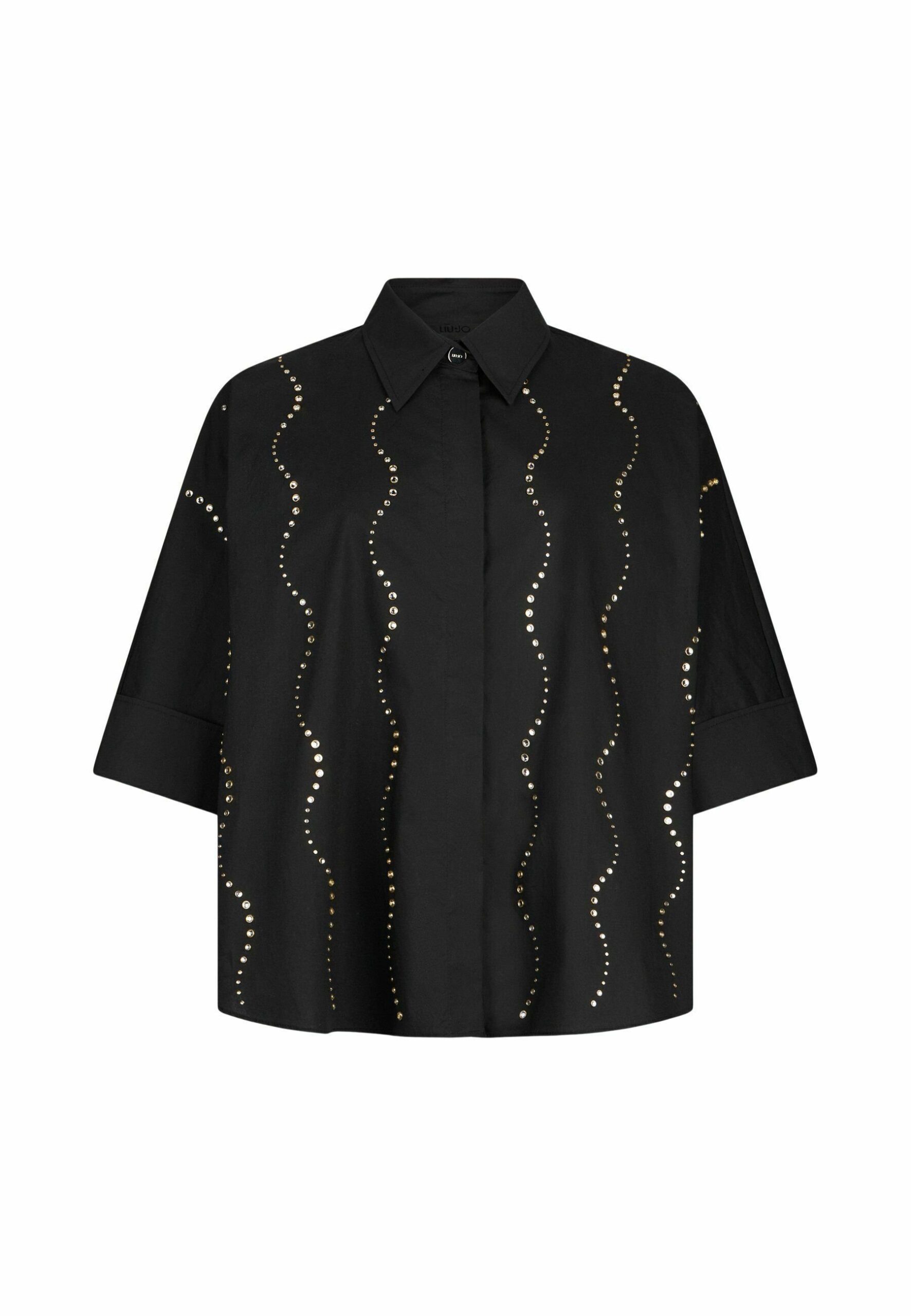 WITH BEJEWELLED APPLIQUÉS – Button-down blouse – black