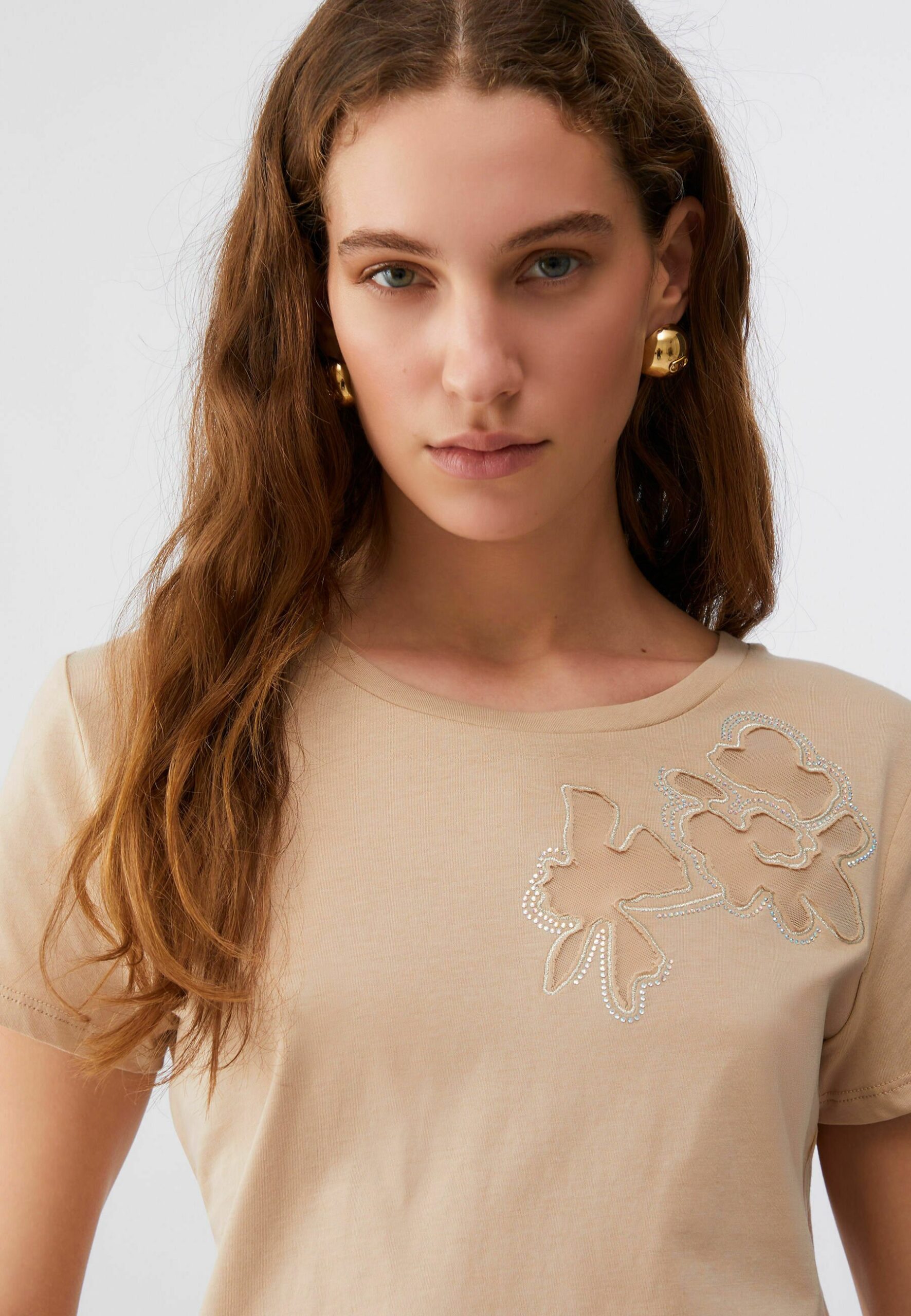 WITH CUT OUT – Print T-shirt – beige