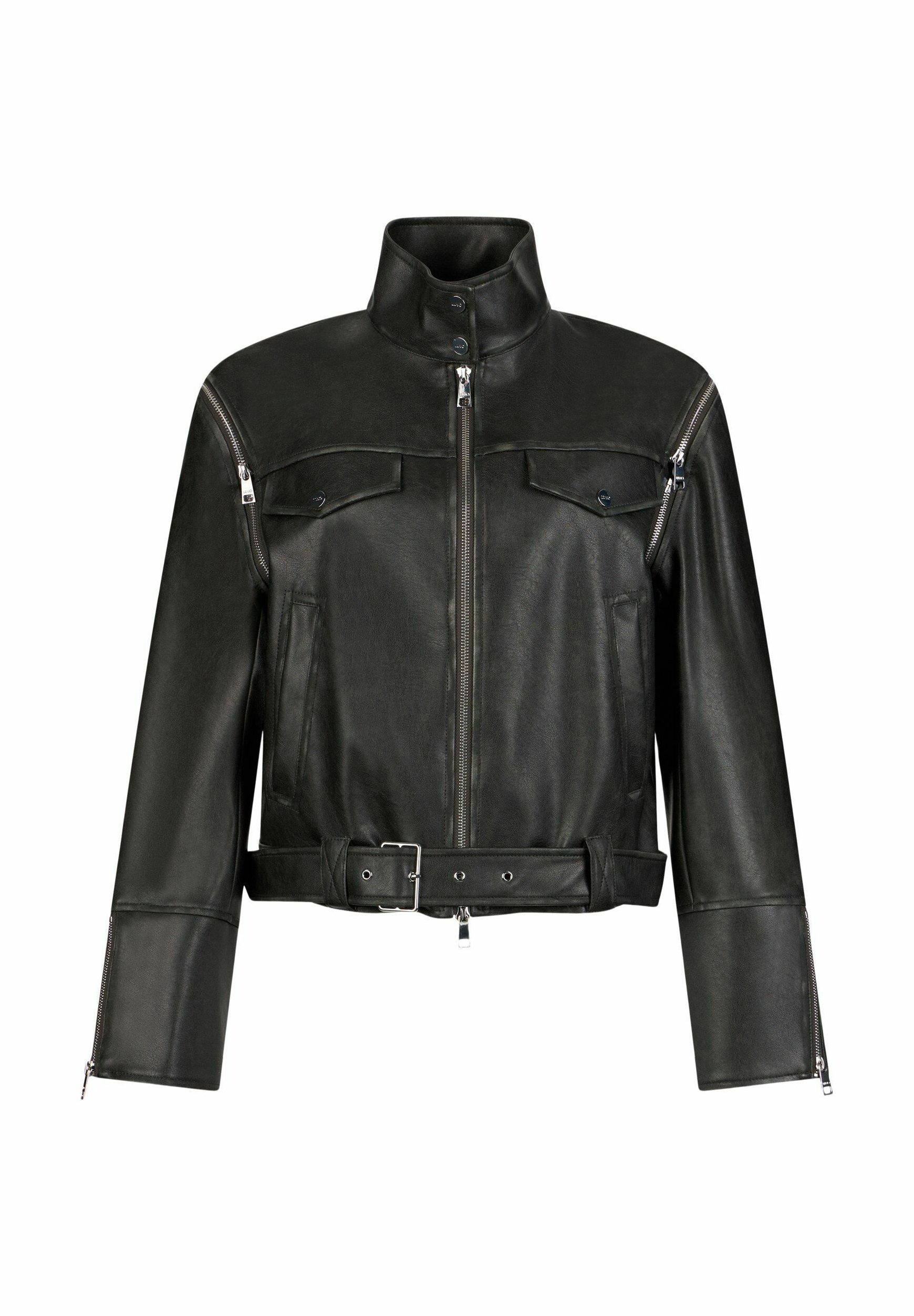 WITH DETACHABLE SLEEVES – Faux leather jacket – black