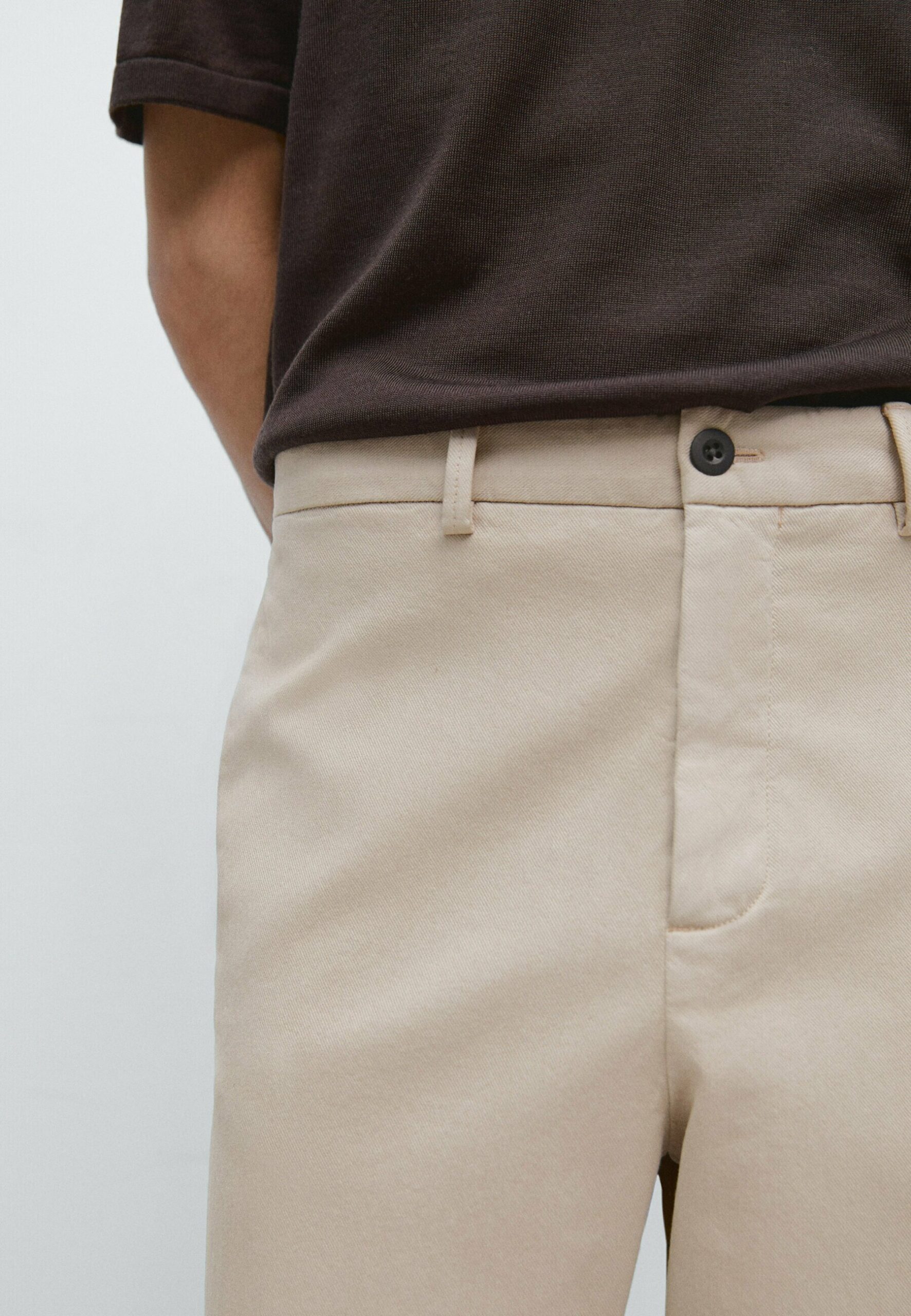 WITH ELASTICATED WAISTBAND – Trousers – beige