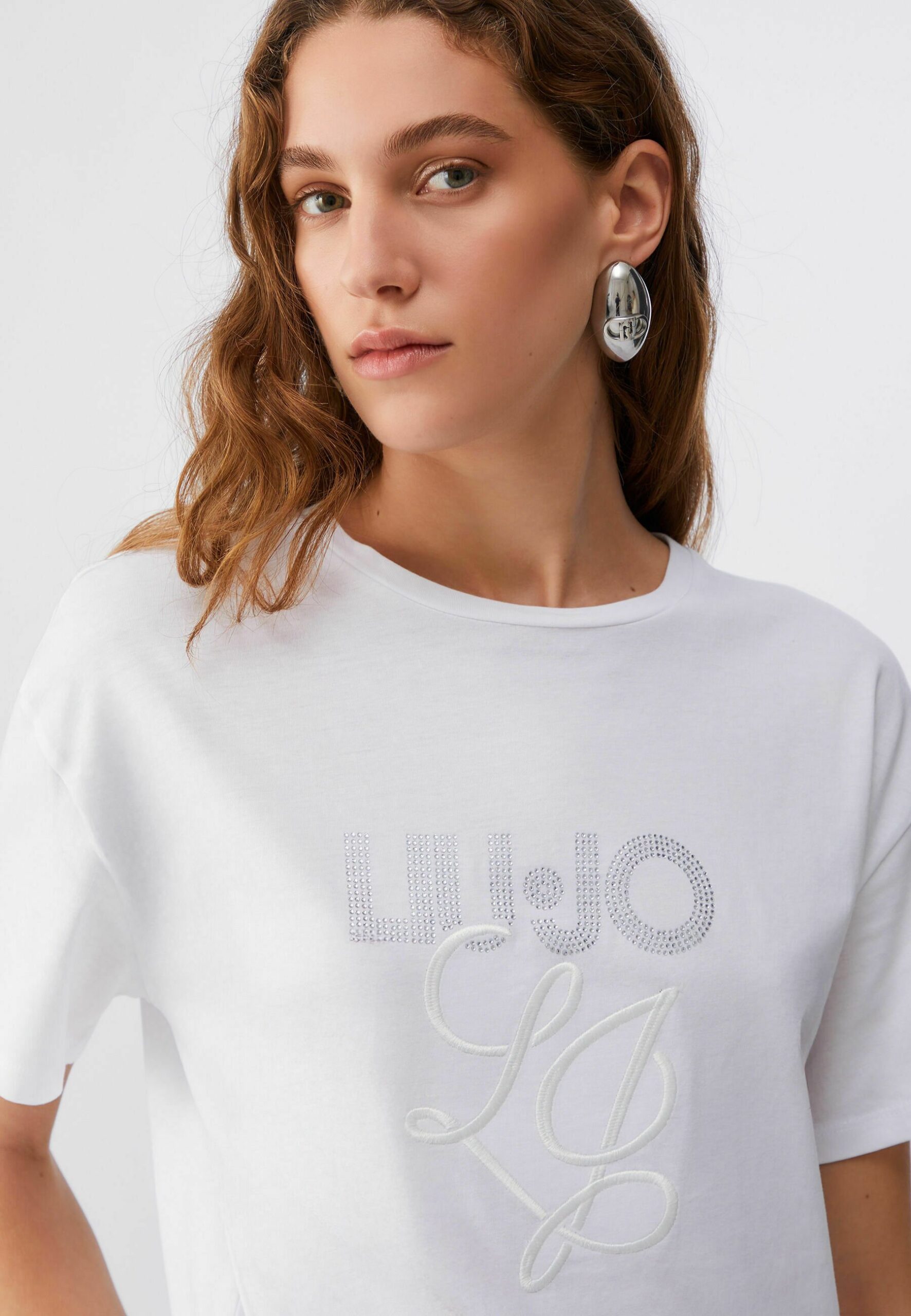 WITH GEMSTONE APPLIQUÈ – Print T-shirt – white