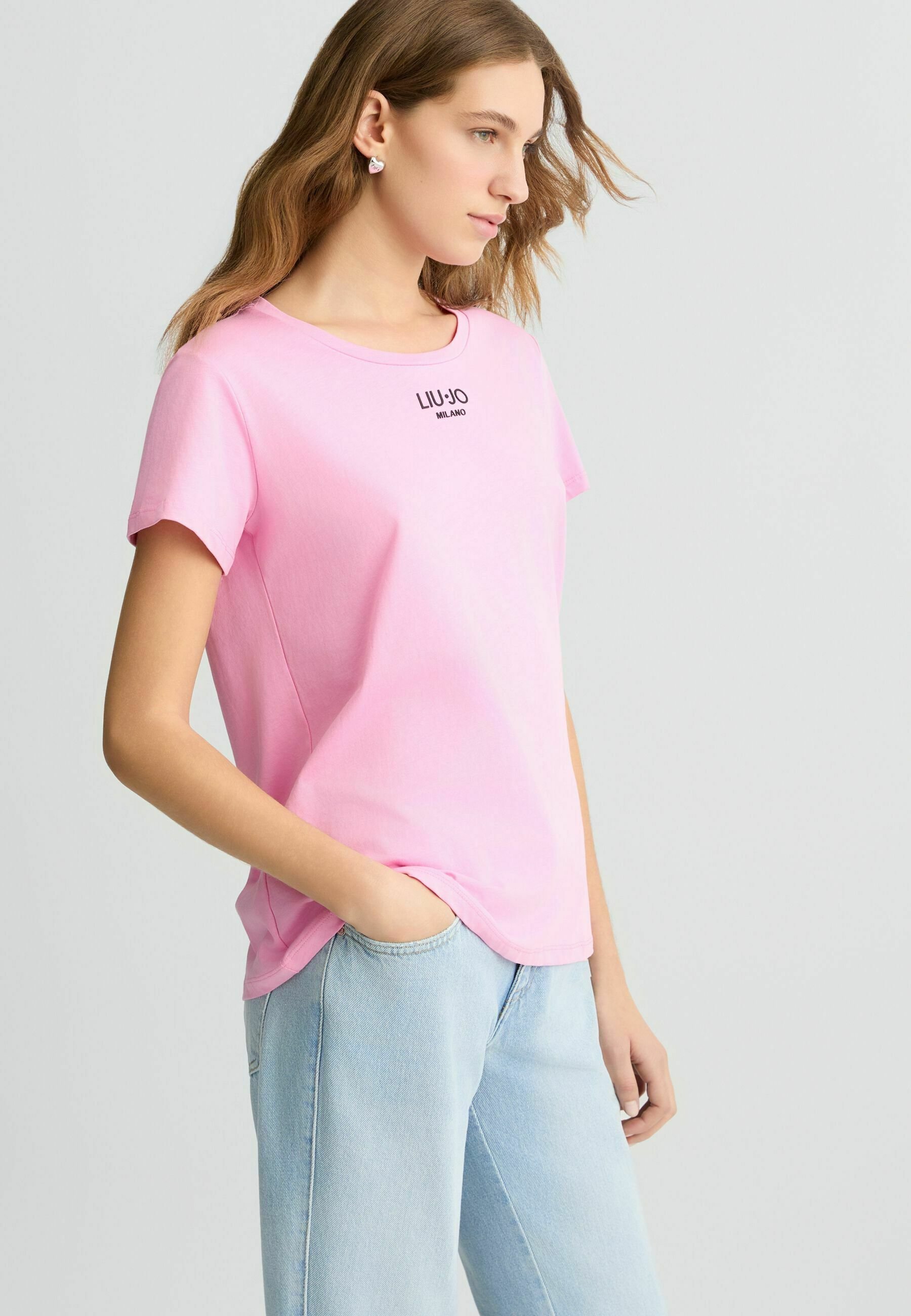 WITH LOGO AND GEMSTONES – Basic T-shirt – pink