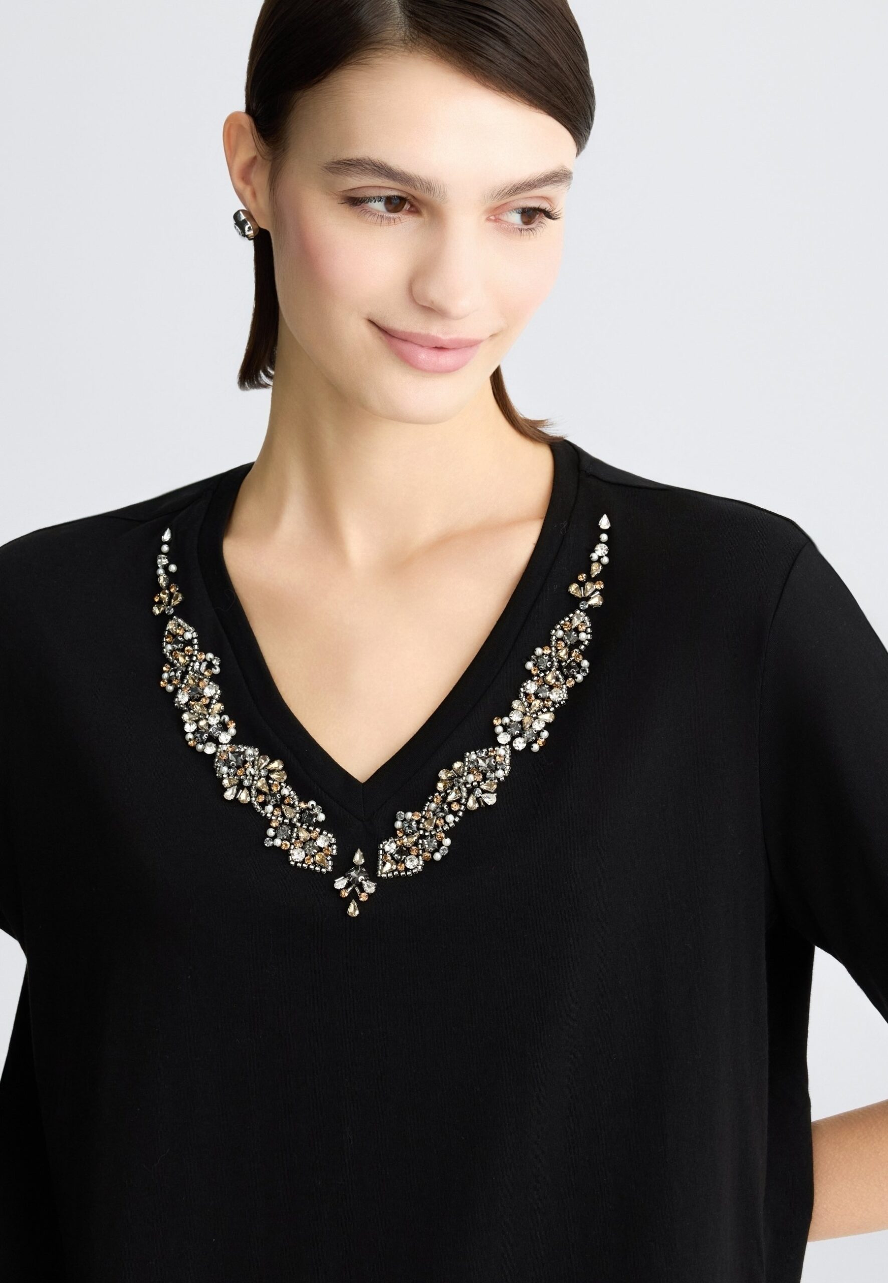 WITH RHINESTONES – Print T-shirt – black
