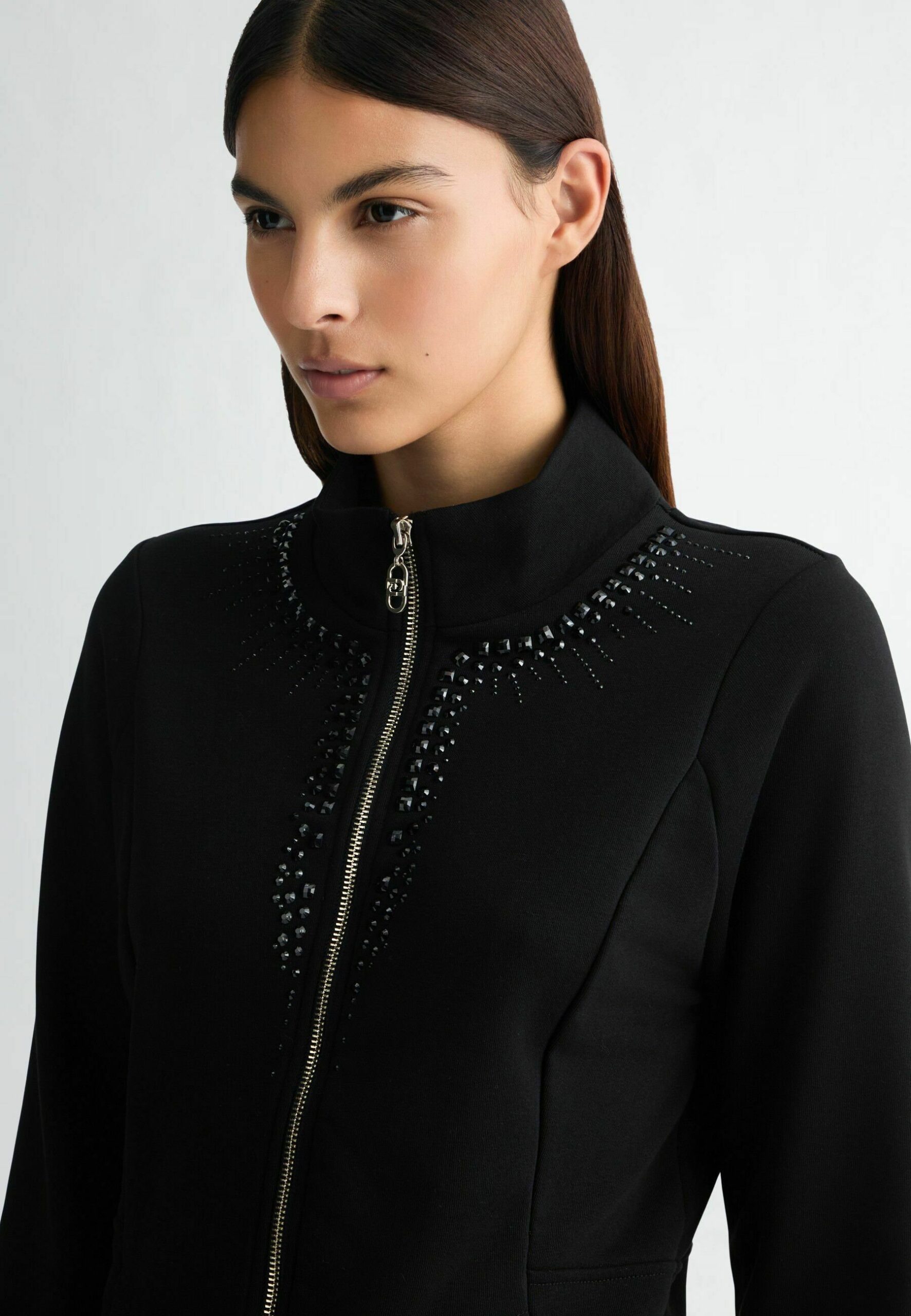WITH ZIP AND RHINESTONES – Zip-up sweatshirt – black