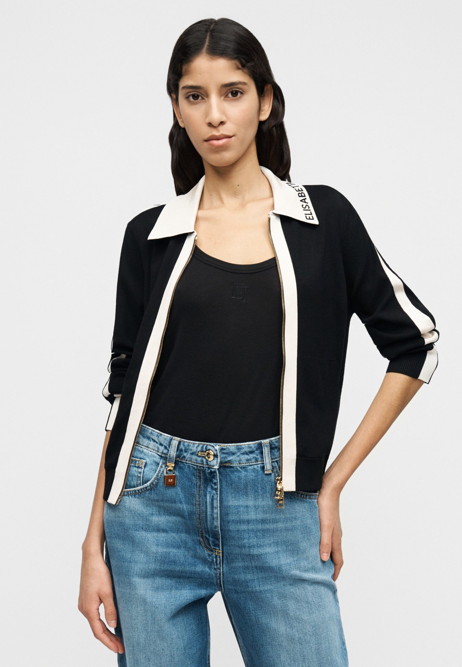 WOMEN KNITTED SWEATER – Cardigan – nero/burro
