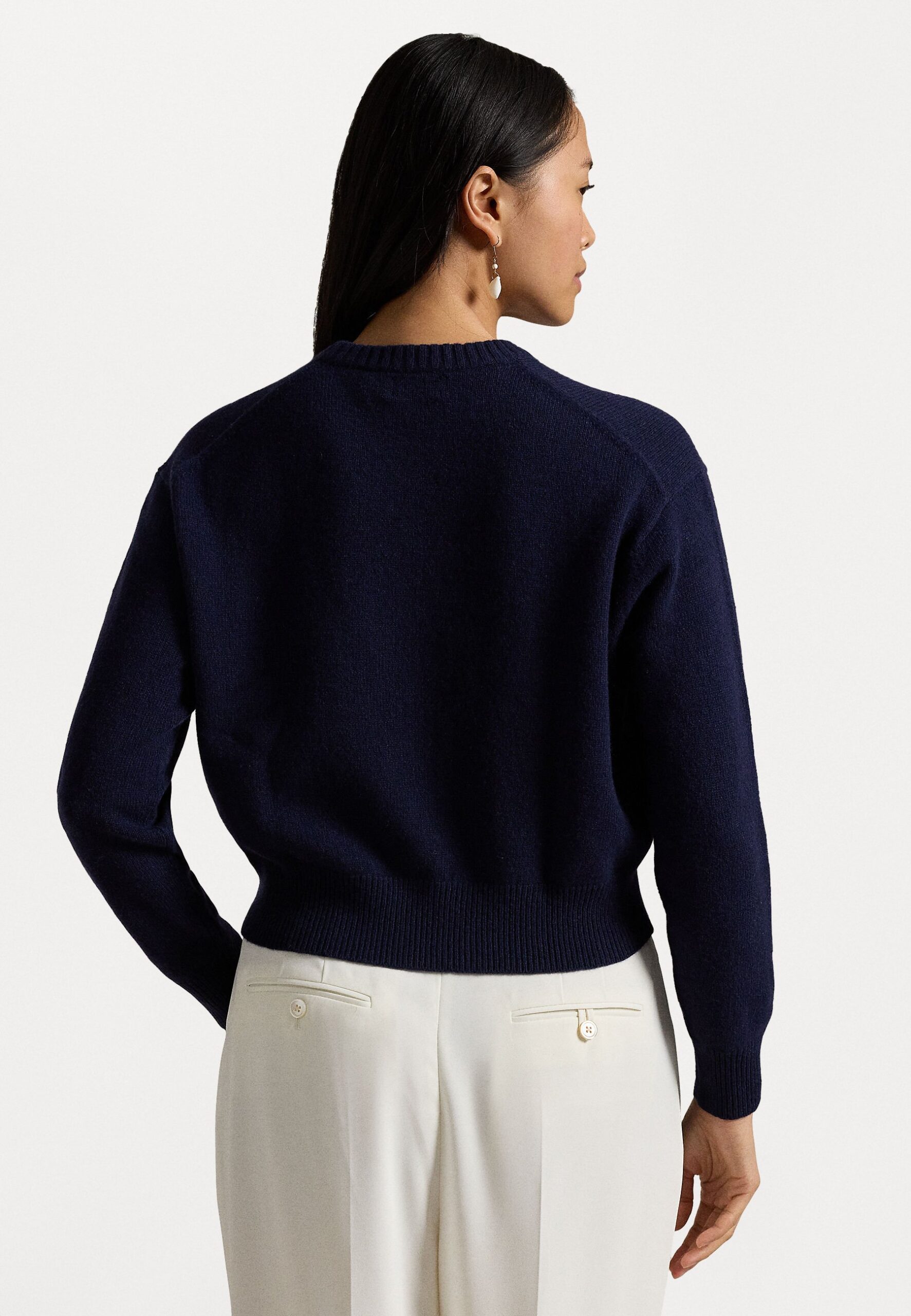 WOOL BLEND CROPPED CREWNECK JUMPER – Jumper – hunter navy