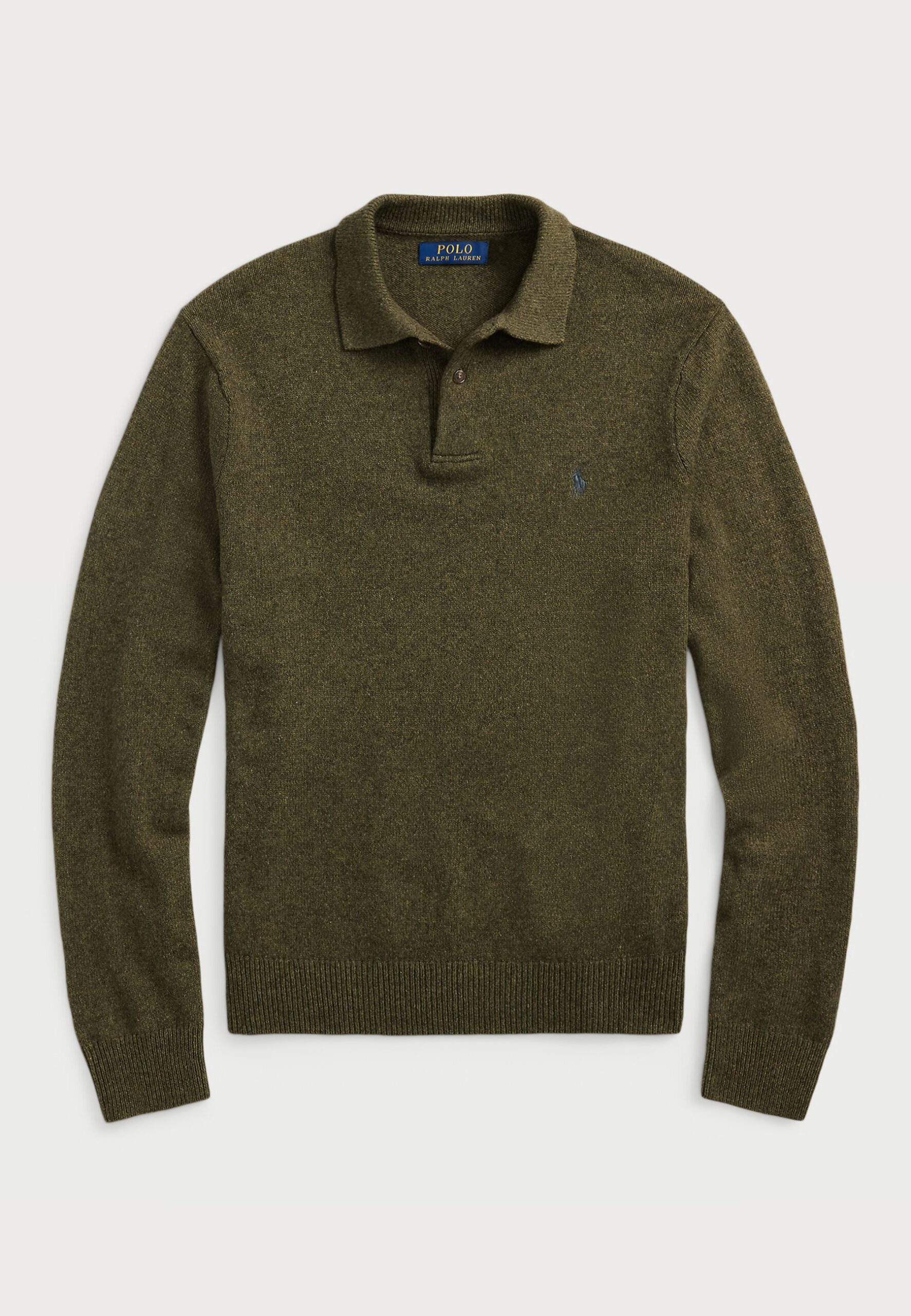WOOL-COTTON POLO-COLLAR SWEATER – Jumper – cargo olive heather