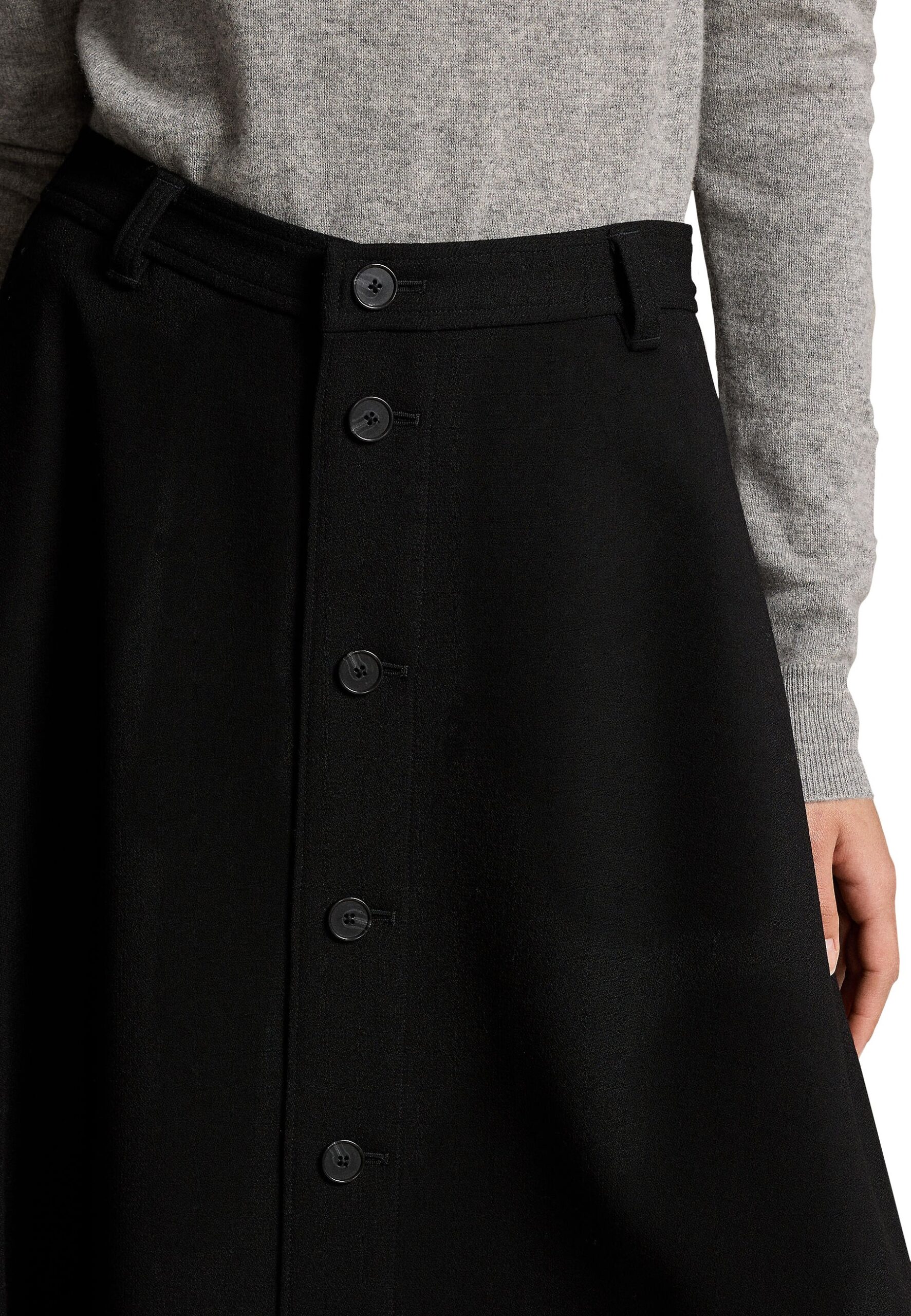 WOOL CREPE BUTTONED SKIRT – A-line skirt – black
