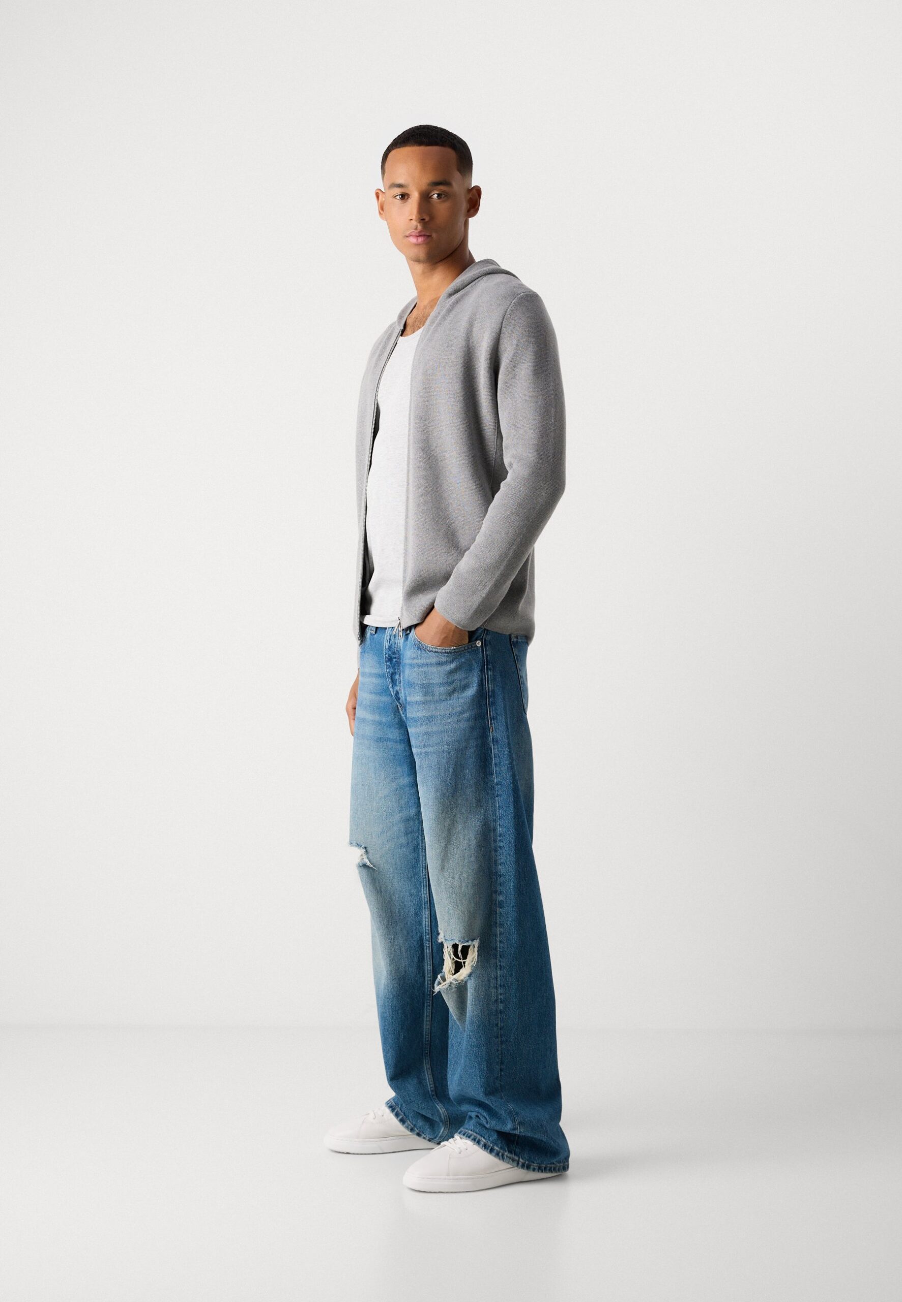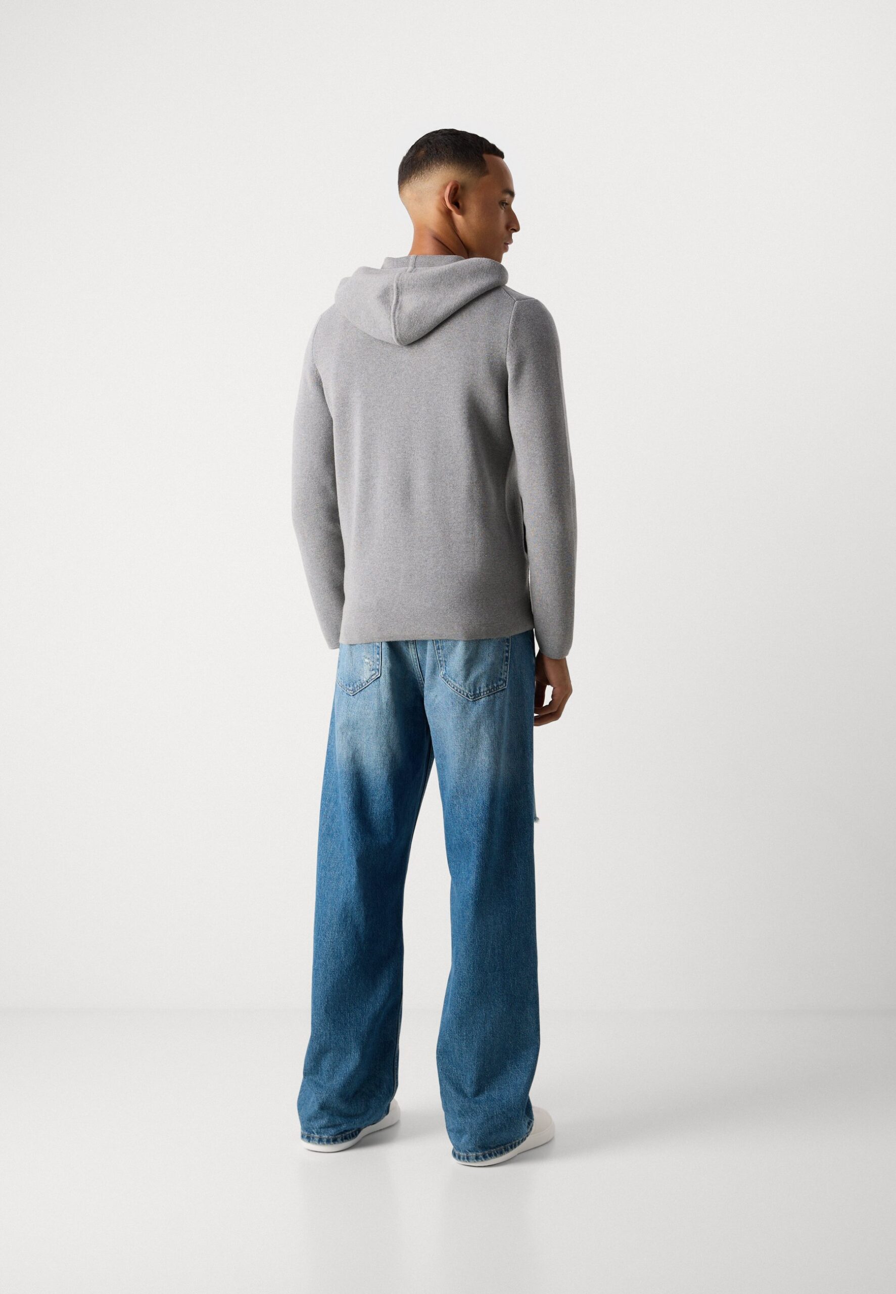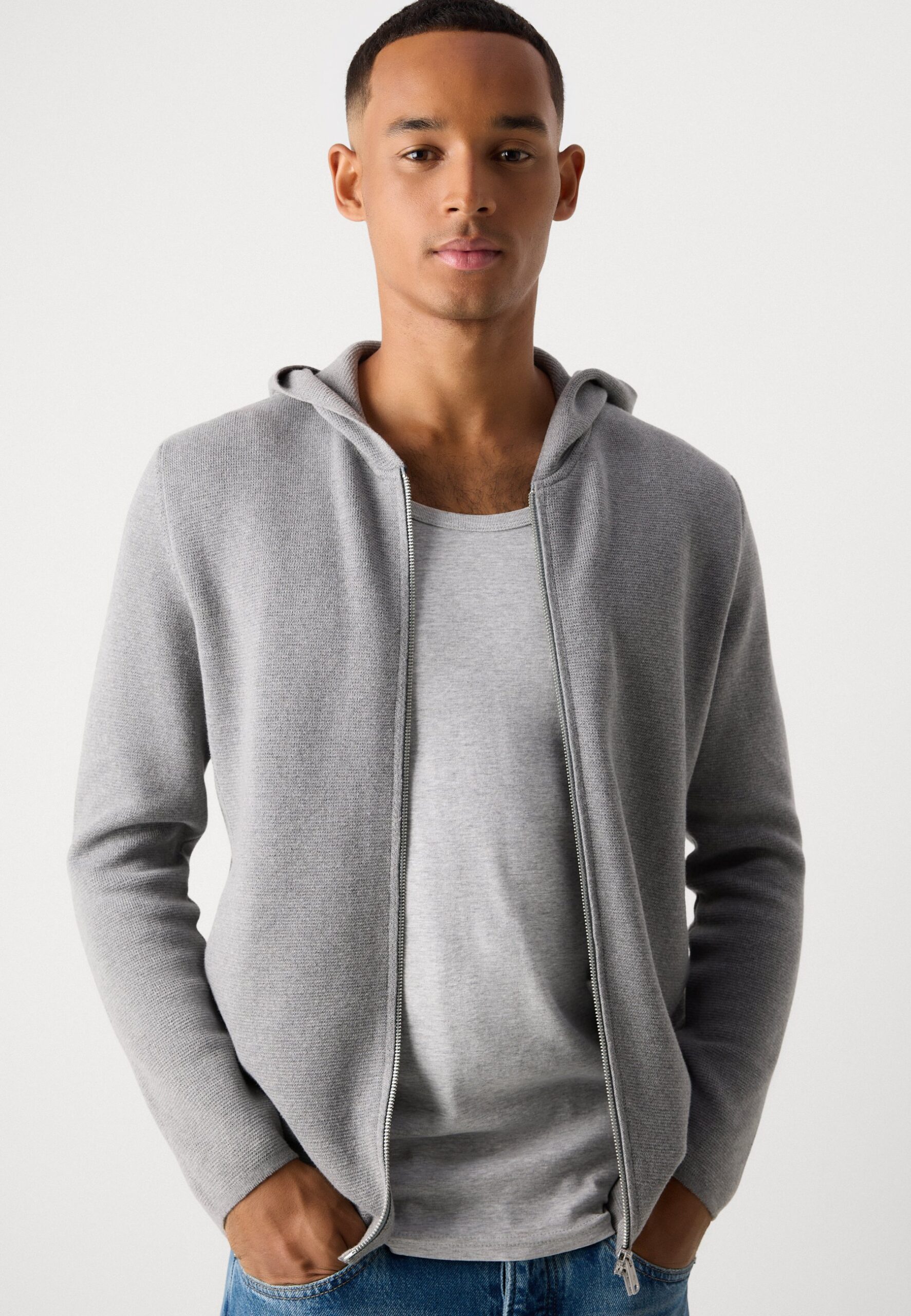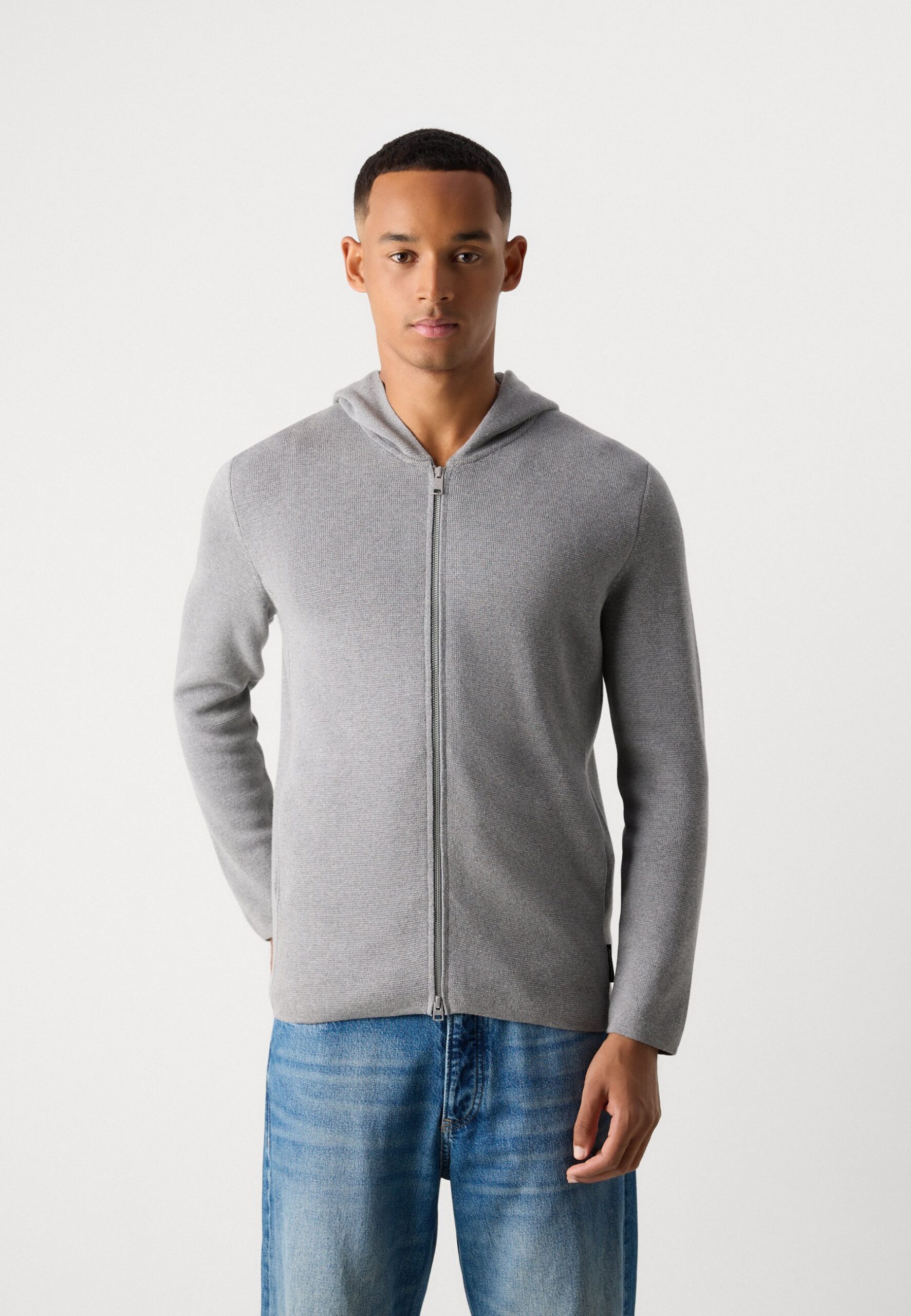 ZIPPED JACKET WITH HOOD – Cardigan – grey melange